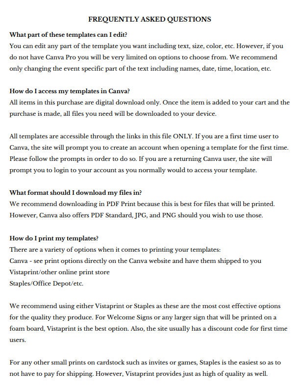 Simply access the templates and edit them to your specific event (date, names, location, etc.) and then print and you are ready to go...bridal shower made easy!